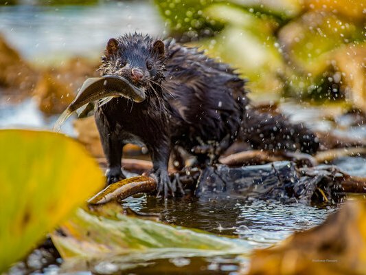 Оседлый, полуводный, интродуцированный вид, сравнительно новый для заповедных биоценозов и дельты в целом. Первые сведения об обитании американской норки на Дамчикском, Трехизбинском и Обжоровском участках получены соответственно в 1976, 1979 и 1982 гг. Наиболее обильна норка на Дамчикском участке заповедника. На Трехизбинском и Обжоровском участках запасы и плотность населения зверька ниже.