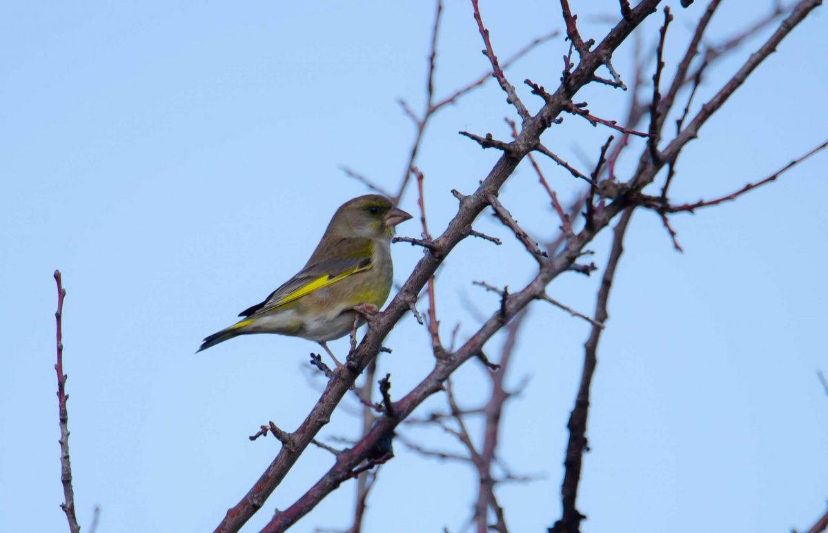 Песня — чередование звонких трелей и щебета с отчетливым громким «вжжжжеееу» с понижением тона в конце. Издалека слышно только жужжание. Поют на вершинах деревьев или в токовом полете. Позывки — мягкое «тюв», жужжащее «жююи», в полете — вибрирующие высокие трельки.