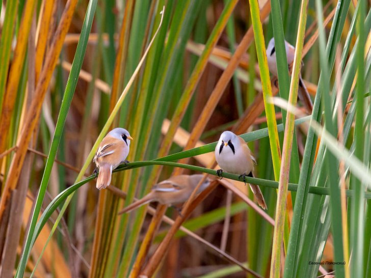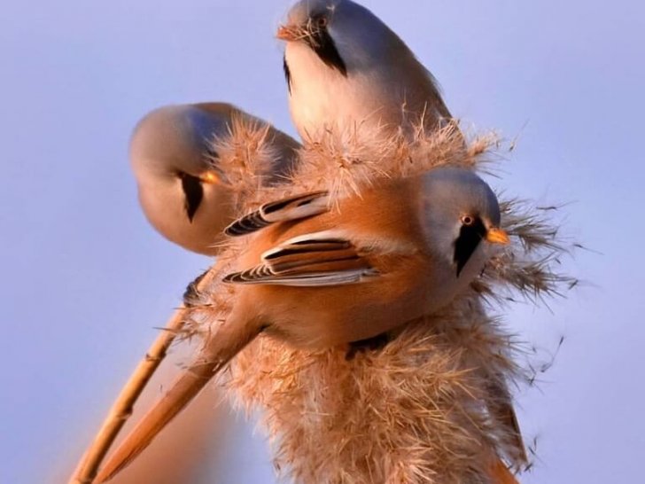 • в холода усатые синицы спят, близко прижимаясь друг к другу, чтобы согреться, а еще они просто обожают чистить друг другу перышки;