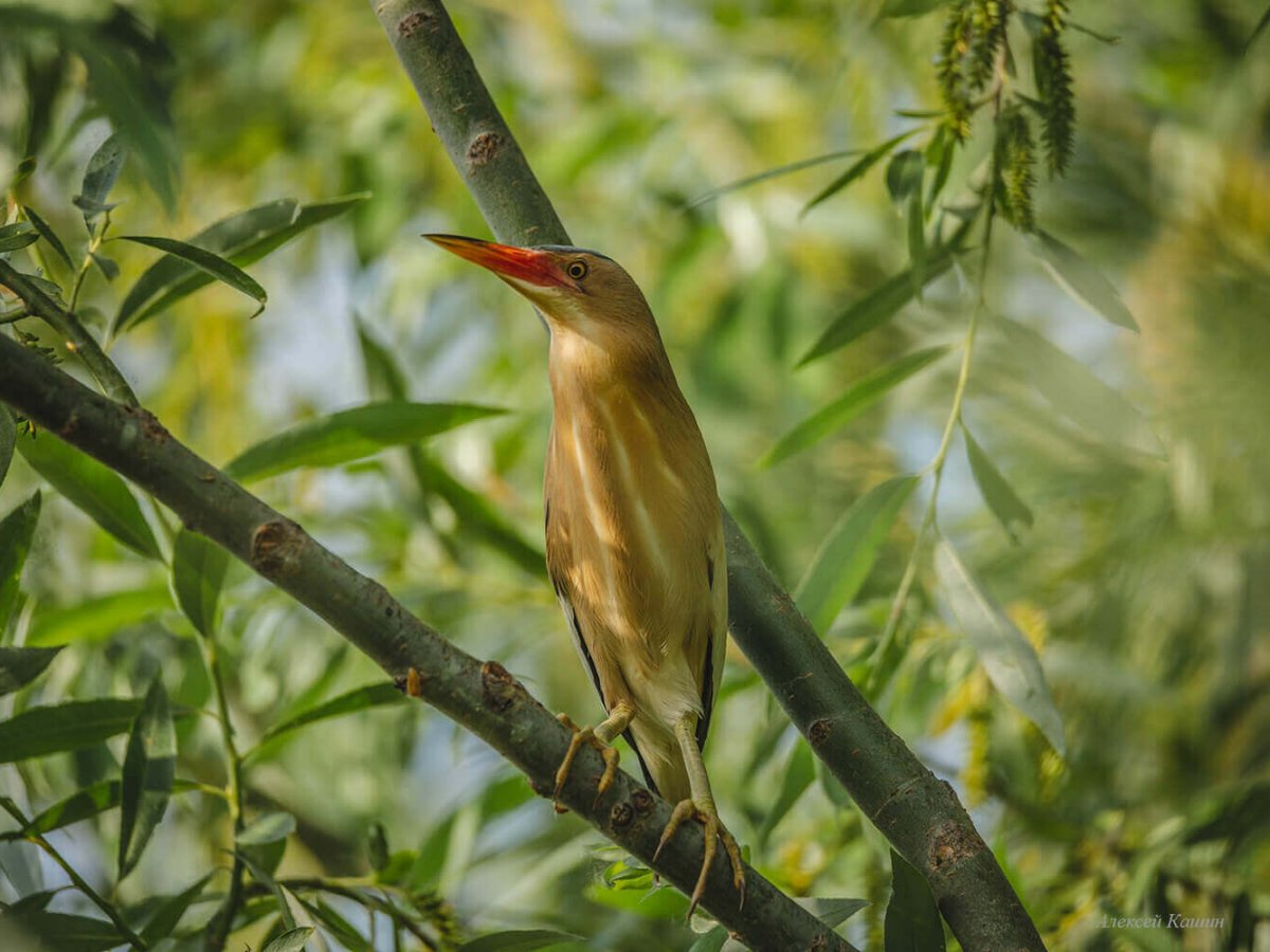 Насиживают кладку и выкармливают птенцов оба родителя. Только что вылупившиеся птенцы совершенно беспомощны, через неделю они уже стоят в гнезде и при приближении человека принимают ту же позу, что и взрослые птицы, т. е. вытягивают вверх голову и шею и в таком положении остаются неподвижными. Очень рано птенцы начинают ловко лазать по ветвям и стеблям тростника.