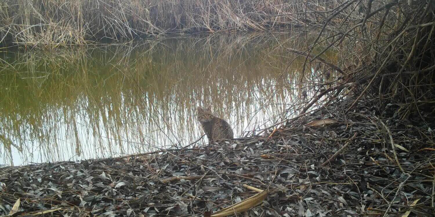 А кто это попал в объектив фотоловушки? Любители котиков, ваш выход! Потому что сегодня в нашей постоянной рубрике очаровательный степной кот. Окраска у степного кота от песчано-коричневой до жёлто-серой с чёрными полосами на хвосте. Дикие коты от домашних кошек отличаются плотным, коренастым телосложением и крупной головой. На территории дельты – это новые, спорадически встречающиеся подвиды. Степной кот собственные норы не выкапывают, укрываются в дуплах старых или упавших деревьев, заброшенных гнёздах или норах других животных.