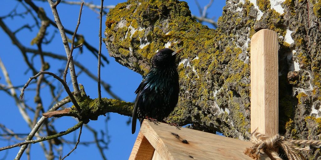 А пока скворцы заселяют свои новые домики и усаживаются на ветках с любопытством осматривая всё вокруг.