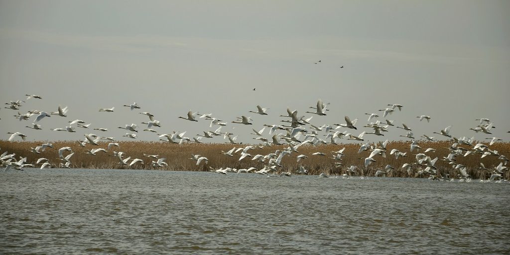 Весна этого года холодная, лед держался долго, на восточном (более холодном) Обжоровском участке заповедника протоки были скованы до середины марта. В связи с этим сдвинулось и время начала полевых работ. Тем временем, весенний пролет птиц в самом разгаре. С мест зимовок возвращаются водоплавающие птицы: цапли, бакланы, пеликаны. Холодная погода в центральной России, заставляет птиц сделать вынужденную остановку в нашем регионе. Так наблюдаются еще крупные скопления лебедей-кликунов и шипунов, идет массовый пролет озерных и речных чаек, хохотуний.