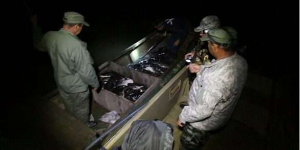 Под покровом ночи на рыбацкой лодке без государственных номеров под мотором «Ямаха-9,9» браконьеры успели выловить 106 сомов разного размера с применением запрещенных орудий лова, 4 сомовников с общим количеством крючков 190 штук, относящихся к способам массового истребления водных биоресурсов.