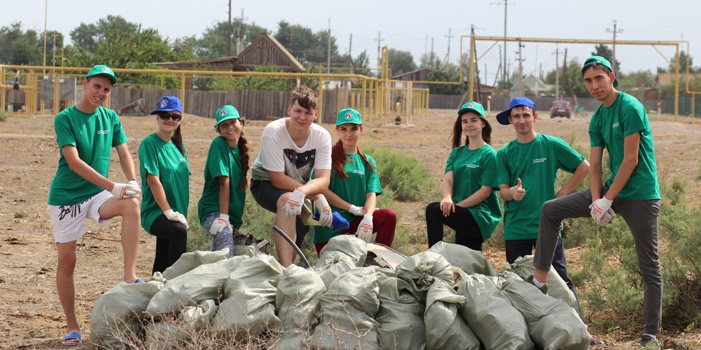На первом этапе волонтеры от Агентства по делам молодежи Астраханской области, жители села и сотрудники отдела экологического просвещения Астраханского заповедника убирали территорию села Полдневое, которое находится по соседству с охранной зоной Астраханского заповедника.