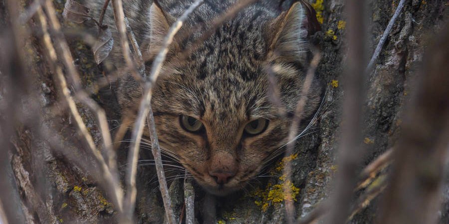 Алексей проследил за котом: животное вело себя спокойно, забралось на дерево и затаилось. Правда, долго зверь в компании человека не провёл – быстро спрыгнул с дерева (с восьми метров), и скрылся в тростнике. Встреча хоть и была непродолжительной, но Алексей успел сделать замечательные фотографии, благодаря которым можно хорошо разглядеть внешний вид кота. Из-за некоторых сомнений видовая принадлежность животного пока что не определена.