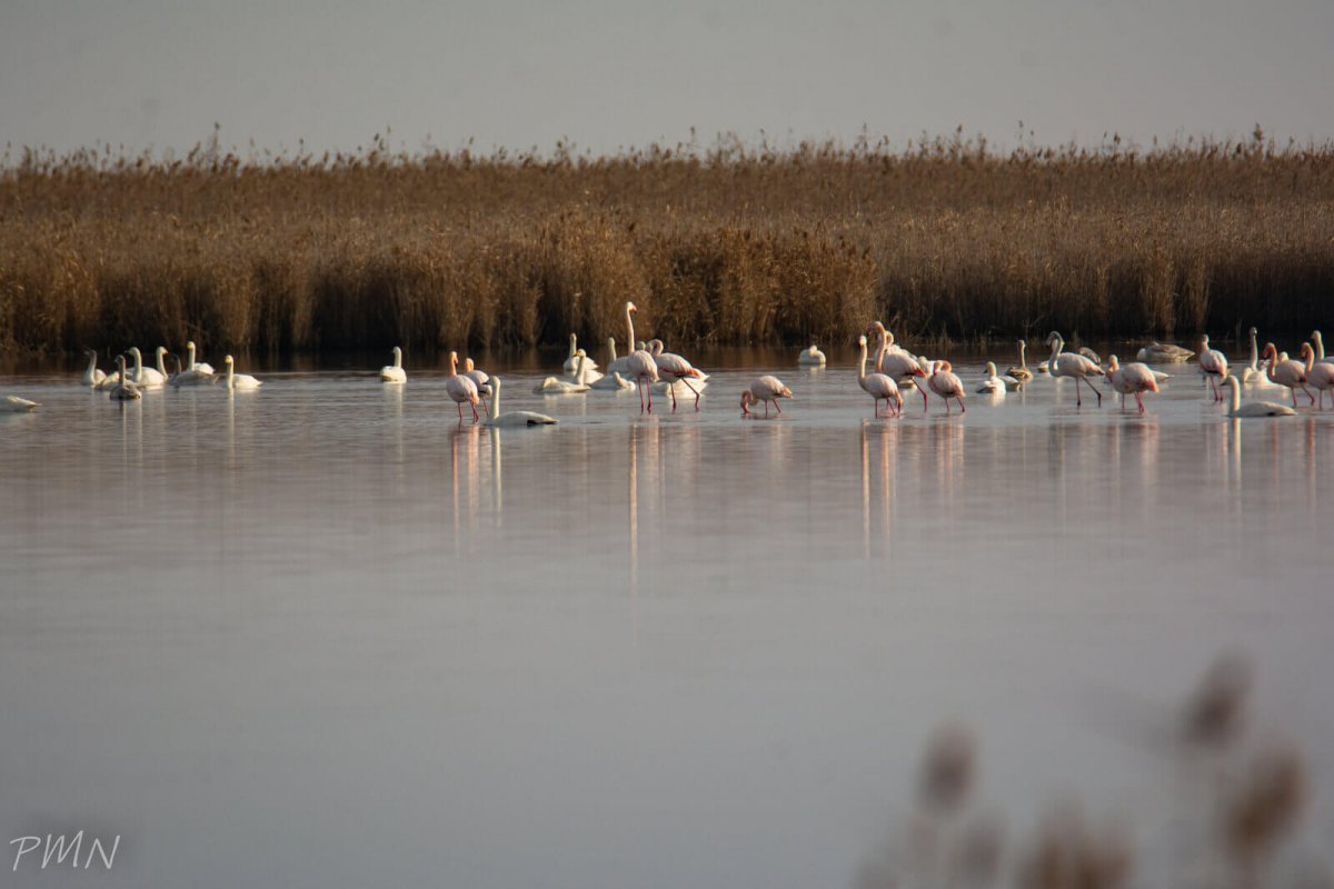 В Азербайджане на западном побережье Каспийского моря находятся одни из самых известных на Каспии мест зимовок водоплавающих и околоводных птиц. Теплый климат и обилие водно-болотных угодий способствовали формированию здесь крупной группировки зимующих птиц, главных образом Гусеобразных – уток, гусей и лебедей. Также многочисленны обыкновенные фламинго, большие и малые бакланы, различные виды цапель, куликов и др.
