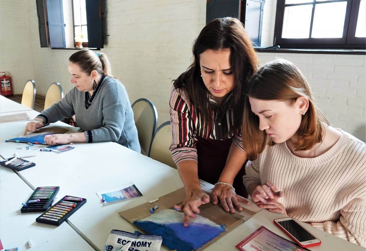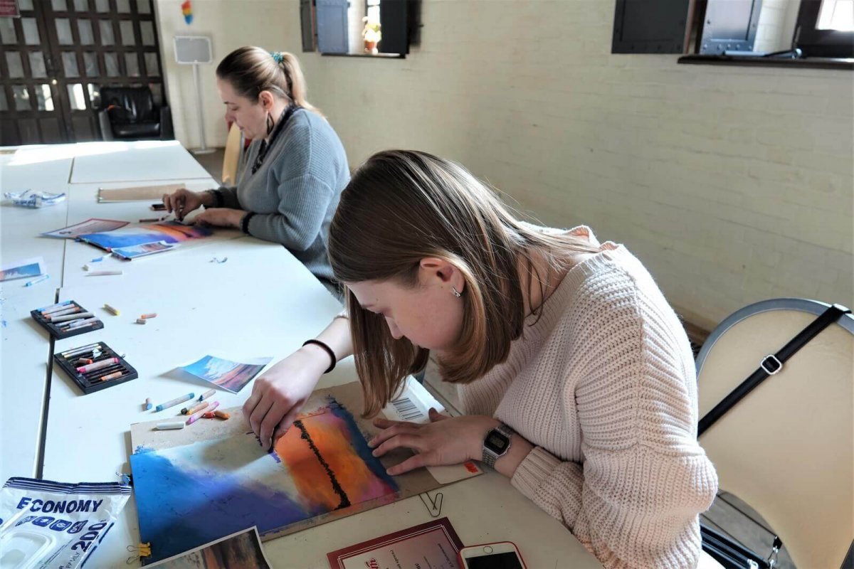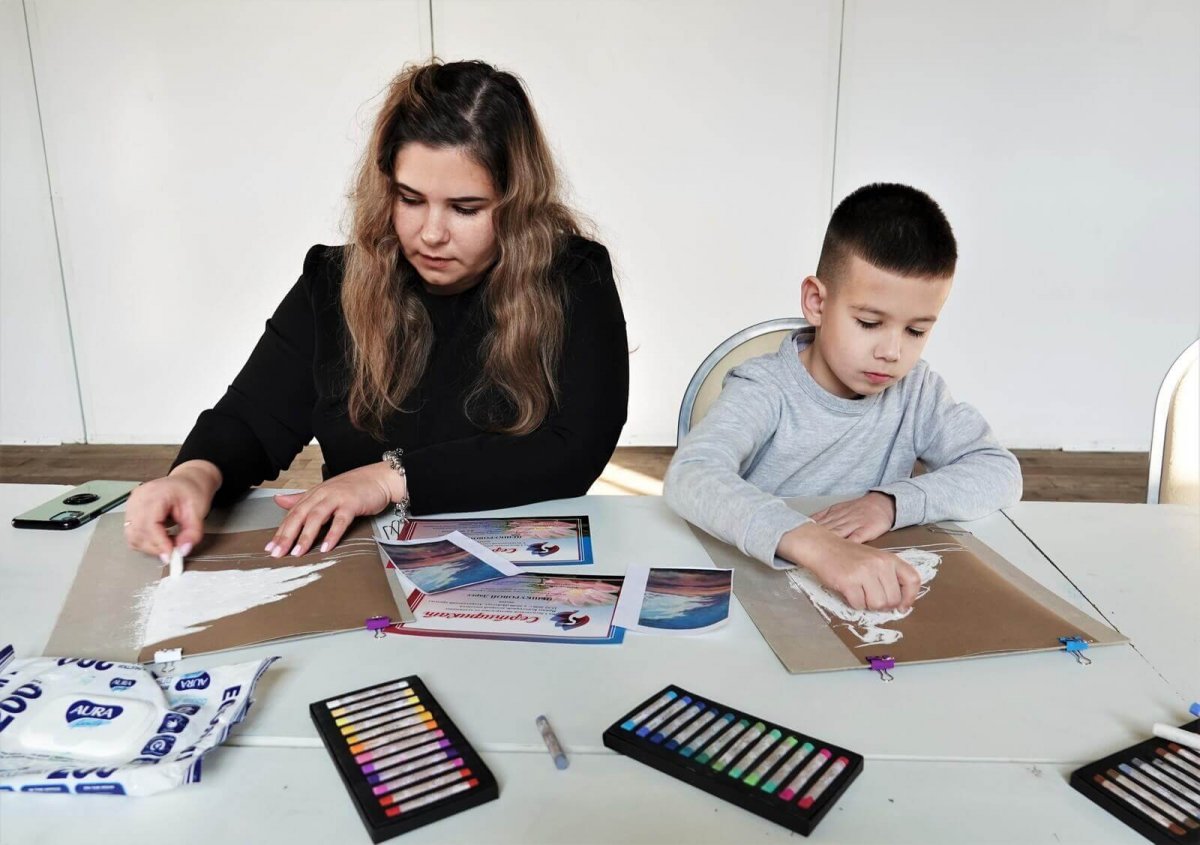 После церемонии вручения сертификатов все участники воодушевленно принялись за творческий процесс. Им предстояло изобразить на наждачной бумаге сухой пастелью красочный пейзаж Волжской дельты. Под руководством художника Ирины Букоткиной дело шло легко и без затруднений. Опытная рука мастера и старание участников положительно сказались на результате. Уже через час картины были выполнены и оставались последние штрихи. Пейзажи получились красивые, динамичные и многогранные, как и природа дельты. Теперь эти призы, сделанные своими руками, останутся на долгую память и будут радовать своих авторов приятными воспоминаниями о выставке «Сохраняя будущее: О природе с любовью..».