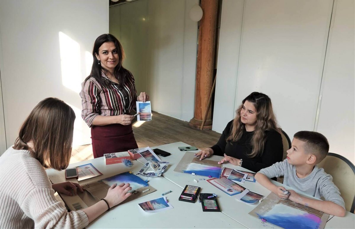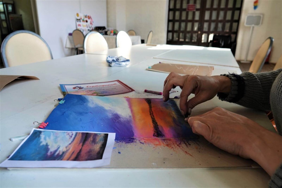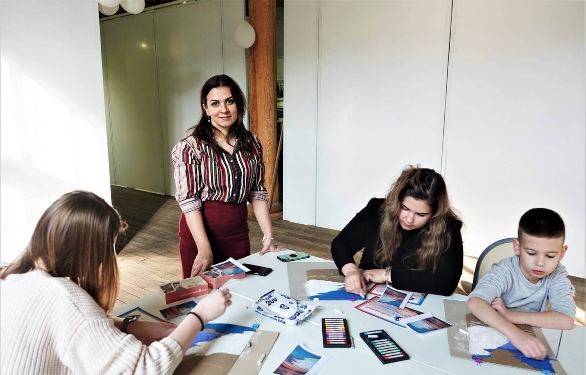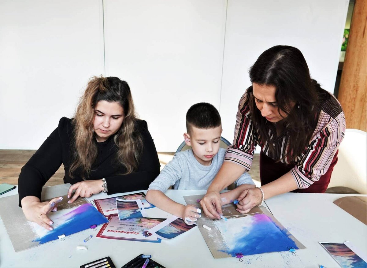 После церемонии вручения сертификатов все участники воодушевленно принялись за творческий процесс. Им предстояло изобразить на наждачной бумаге сухой пастелью красочный пейзаж Волжской дельты. Под руководством художника Ирины Букоткиной дело шло легко и без затруднений. Опытная рука мастера и старание участников положительно сказались на результате. Уже через час картины были выполнены и оставались последние штрихи. Пейзажи получились красивые, динамичные и многогранные, как и природа дельты. Теперь эти призы, сделанные своими руками, останутся на долгую память и будут радовать своих авторов приятными воспоминаниями о выставке «Сохраняя будущее: О природе с любовью..».