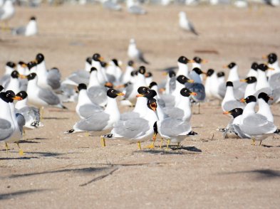 У хохотуньи также есть несколько крупных гнездовых «очагов», но часть птиц гнездиться по всей территории острова, диффузно распределяясь внутри гнездовой колонии черноголового хохотуна.