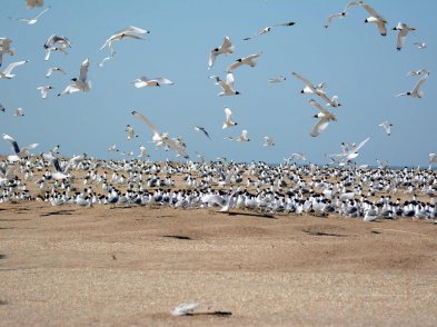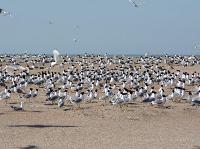На острове обитают два вида птиц, которые занесены в Красную Книгу РФ. Это чёрноголовый хохотун и чеграва. Помимо этих видов на острове гнездятся хохотунья и пестроносая крачка. Апрель для проведения мониторинга примечателен тем, что в это время птицы начинают активно строить колонии и откладывать первые яйца в гнёздах. Во время обследования была обнаружена крупная колония черноголового хохотуна, которая ещё только начала своё формирование. Большая часть птиц из этой колонии занята сейчас постройкой гнёзд. Остальные виды птиц пока что не приступили к гнездованию, но чегравы и пестроносые крачки уже определились с местом и организуют скопления на нескольких участках острова.