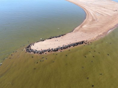 Также был проведён учёт каспийской нерпы на самом острове и прилегающей акватории. На крупной лежке в южной части острова отдыхало более 750 животных. На нескольких небольших по площади косах южнее острова были найдены еще два скопления, насчитывающие, в сумме, около 300 зверей. Для отдыха тюлени использовали и остов старой брандвахты, выступающий из воды (на фото).