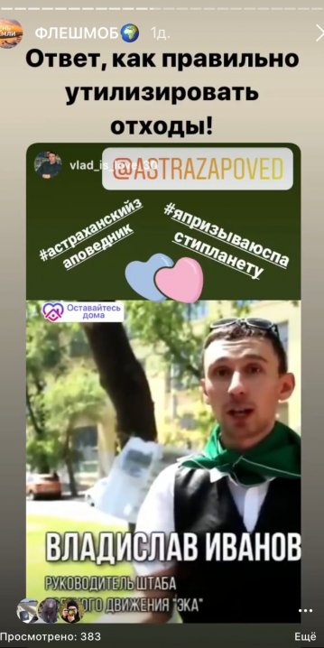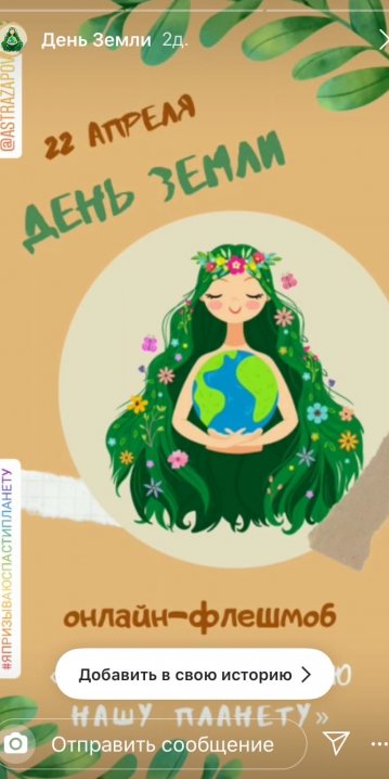 🌍 Участники в течение всего дня выкладывали в Instagram-stories видео или фото, где показывали, как заботятся о нашем общем доме – планете Земля! Участие приняли не только астраханцы, но жители других городов – Москвы, Санкт-Петербурга и Казани.