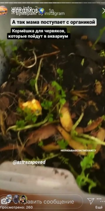 🌿 @vero.info если видит мусор на улице, то обязательно подбирает его и несёт к урне, также она занимается раздельным сбором мусора, а органические отходы она подвергает вермикомпостированию! Да, у неё дома живут дождевые черви, которые в будущем идут на корм аквариумным рыбам.