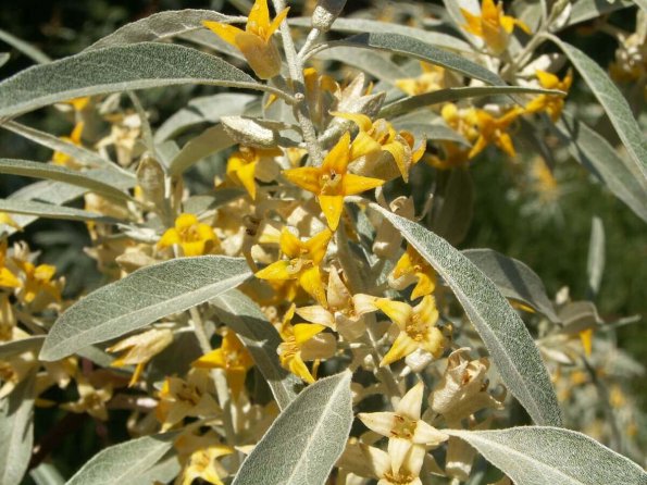 🌿 Цветёт Лох узколистный, представляющий из себя кустарник 3–7 м высотой, с красно-бурой корой, стеблевыми крупными колючками, ланцетными узкими листьями. Цветки растения на коротких цветоножках, мелкие, не более 1 см, располагаются в пазухах листьев по 1–3 штуки. Плоды съедобны, а из цветков получают эфирное масло, применяемое в парфюмерии.