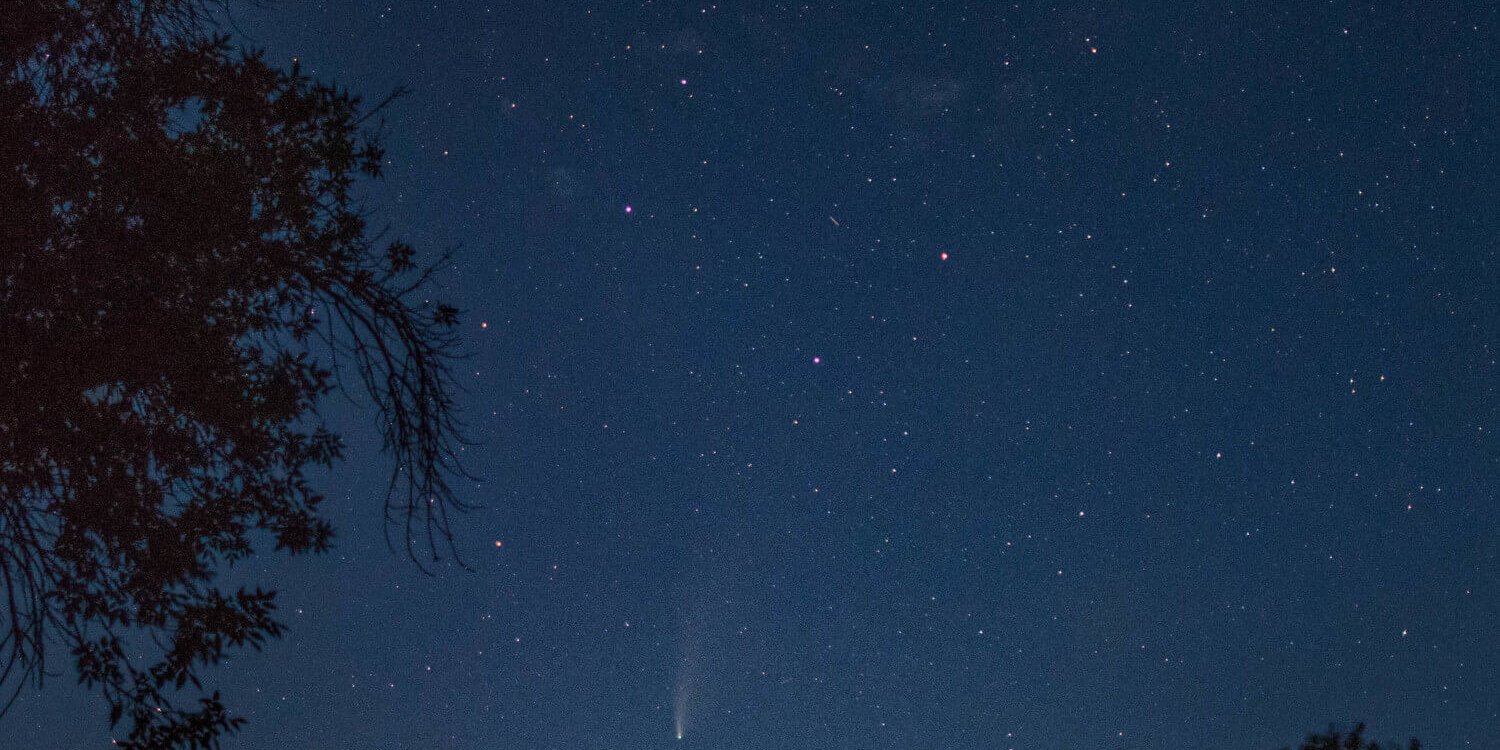 «Меня вдохновили снимки других фотографов, но я до последнего не верил, что смогу запечатлеть комету. 27 июля мне повезло, комета показалась после захода солнца под созвездием Большой Медведицы. У меня было всего 15-30 минут, чтобы получить качественные кадры, пока она «не спряталась» за деревьями», – поделился впечатлениями Рустам Тулендеев. Он также рассказал, что любит фотографировать ночное небо именно в Астраханском заповеднике, который удалён от крупных населённых пунктов. Это создаёт все условия для удачной ночной съёмки – световые помехи не мешают, получаются красивые снимки.