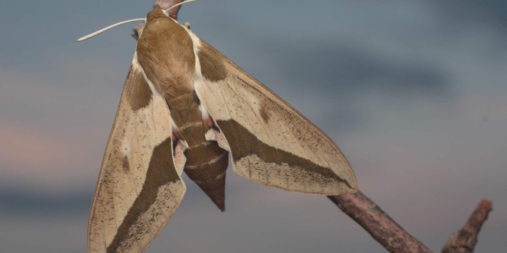 Следующая бабочка — Бражник молочайный. Размах крыльев 65-80 мм. В окраске тела и крыльев преобладают оливковые и коричневые тона. Грудь и брюшко оливковые, брюшко с белыми полосами по бокам. Передние крылья светло-коричневые с оливковыми пятнами и полосами. Задние крылья розовые, c чёрным пятном у основания и чёрной полосой вдоль края крыла. Встречается повсеместно в островной части дельты с апреля по октябрь. Гусеницы этой бабочки кормятся на молочае.