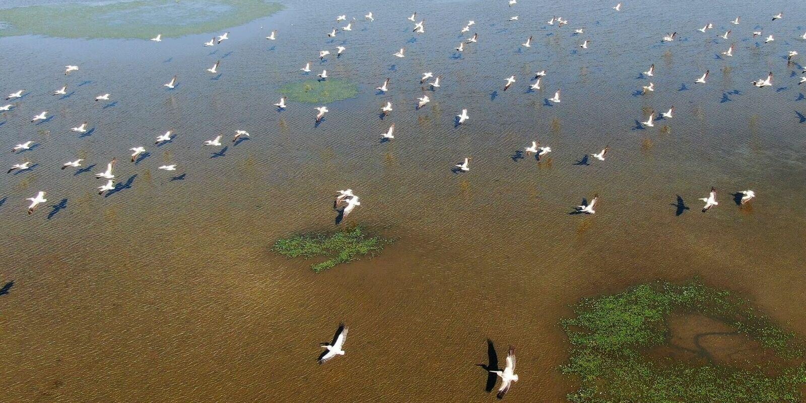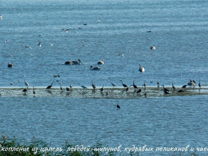 Среди разрешенных к добыче водоплавающих и околоводных видов числятся: лебедь-шипун, серый гусь, огарь, пеганка, кряква, серая утра, шилохвость, чирок-свистунок, чирок-трескунок, красноносый нырок, красноголовая чернеть, обыкновенный гоголь, лысуха, большой баклан. Абсолютное большинство в этом списке составляют Утиные, среди которых орнитологи во время поездки наблюдали лебедей, гусей, крякв, чирков-свистунков, шилохвостей, огарей и красноносых нырков.