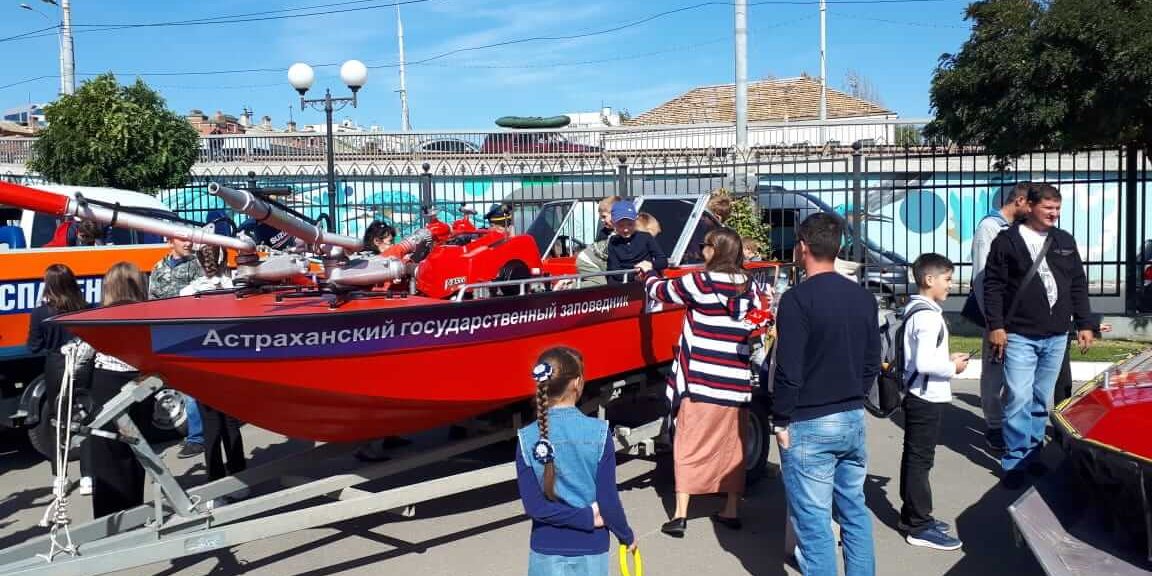Астраханский государственный заповедник представлял противопожарный комплекс – моторная лодка, оснащенная стационарной установкой высокого давления «TOHATSU».