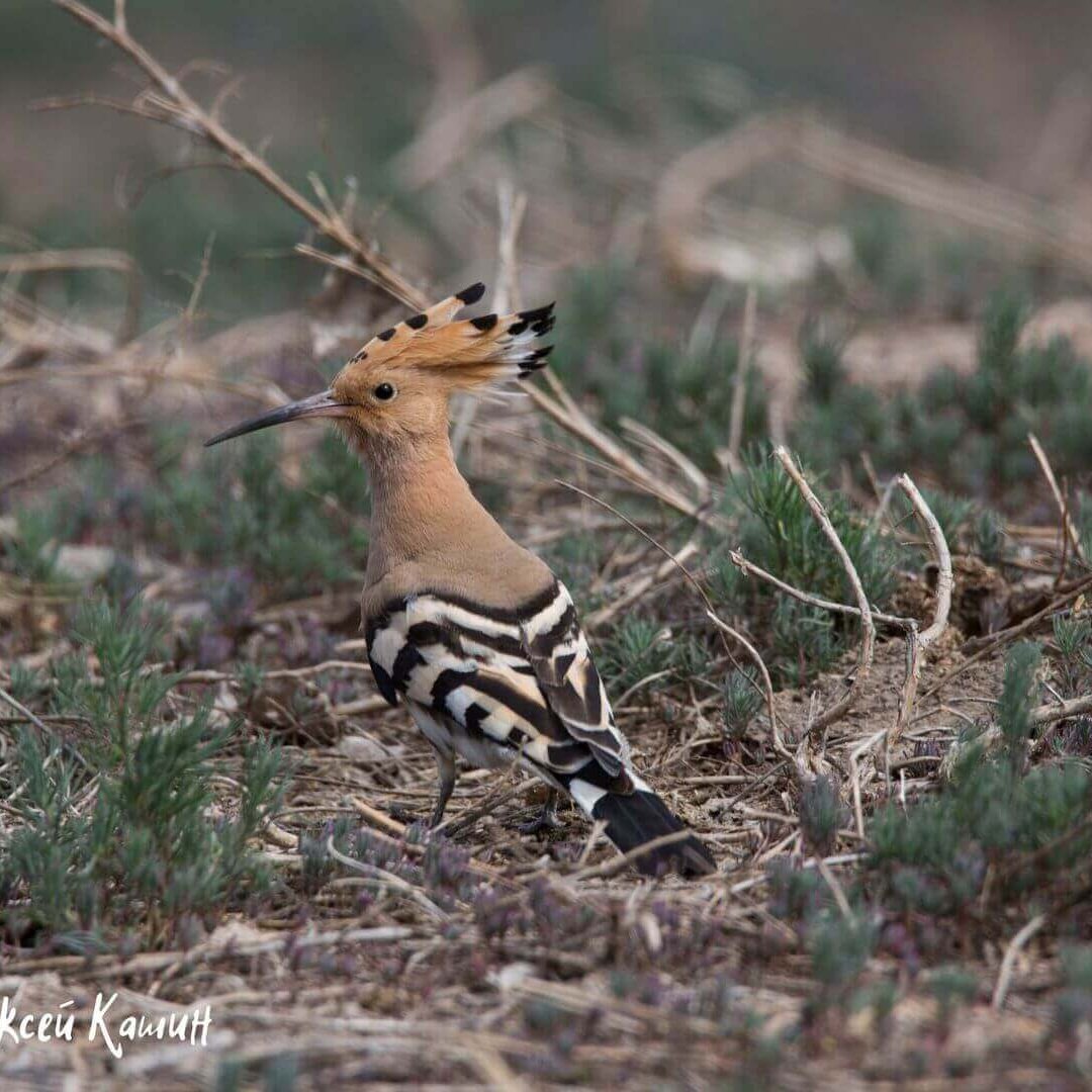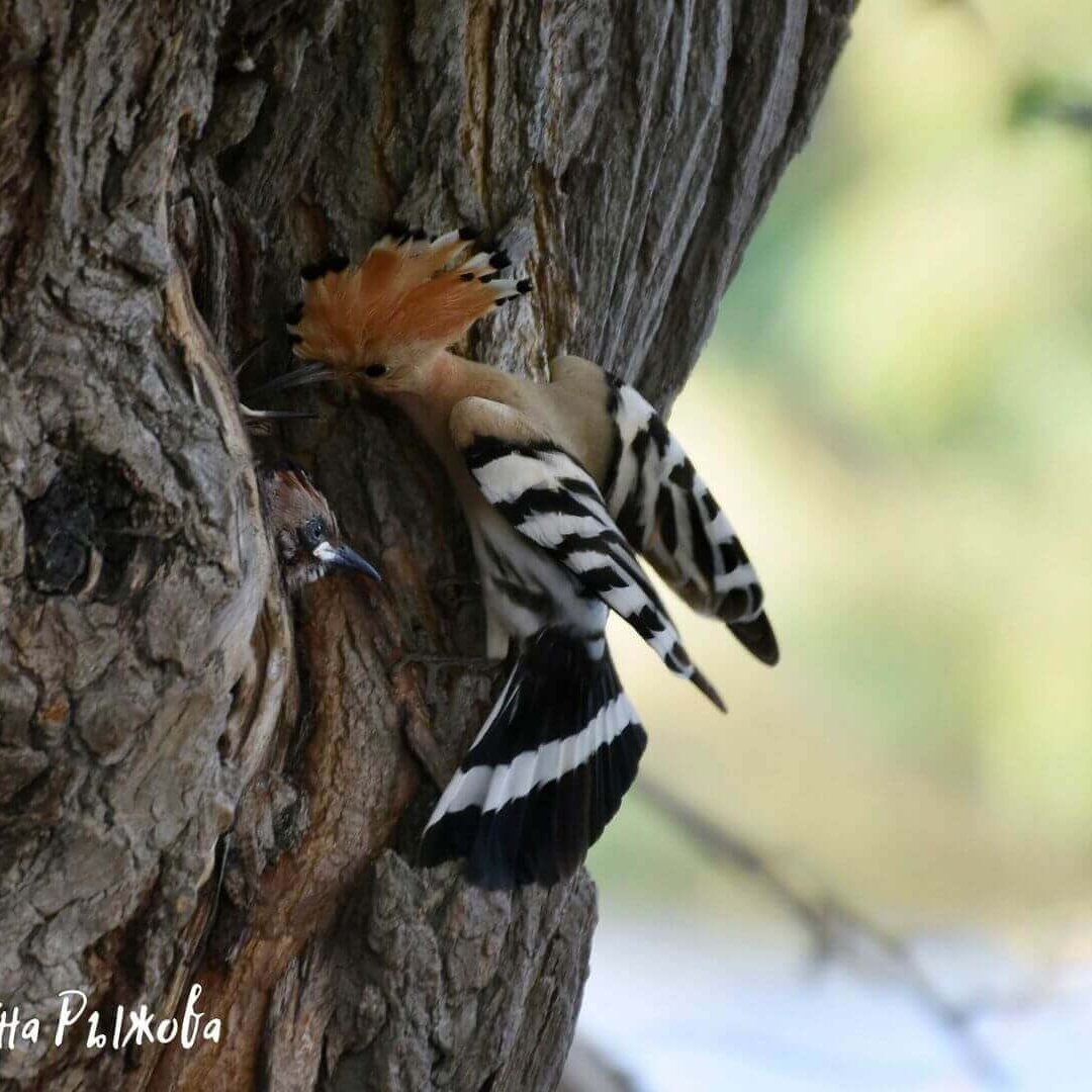 На пятом месте – удод. Вот эту яркую птичка часто встречается и в черте города, её глухой крик «уп-уп-уп» можно услышать из густых крон деревьев. Голова, верхняя часть спины, зоб и грудь охристо-рыжие, на нижней части спины чёрные поперечные полосы, поясница белая. На голове веерообразный хохол из длинных рыжих перьев с чёрными концами. На боках тёмные пестрины, подхвостье белое. Крылья широкие, округлые, чёрные с белыми поперечными полосам. Хвост чёрный с белой поперечной полоской. Клюв длинный, тонкий, немного загнутый вниз, чёрный, ноги бурые. Самец и самка выглядят одинаково. Даже если вы повстречаете эту птичку в городе, то не стоит её тревожить, а особенно лезть в её гнёзда. Птенцы в гнезде шипят, делают резкие выпады и могут обстрелять врага помётом и маслянистой жидкостью с резким неприятным запахом.