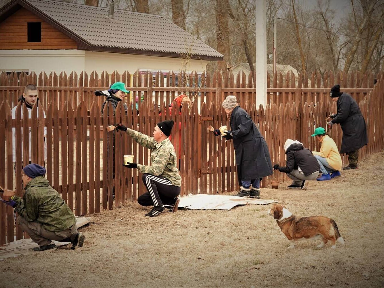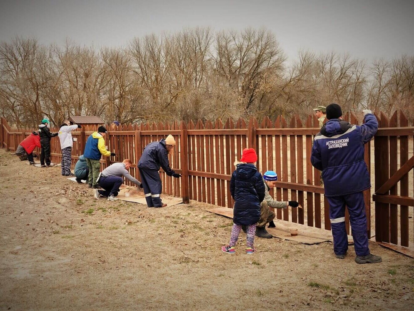 Задач у волонтёров было много – они убирали территорию кордона, подготавливали экологическую тропу «Обретённая дельта» к новому туристическому сезону, выполняли другие мелкие бытовые задачи и, конечно же, помогали с покраской забора. Работа не самая простая – протяженность забора около километра, а покрасить его нужно было с обоих сторон, но ребята с задачей успешно справились. Сотрудники Астраханского заповедника присоединились к добровольцам и организовали «Волонтёрский десант». При этом в работу активно включились не только сотрудники, проживающие на кордоне, но и сотрудники Управления заповедника, которые каждый день приезжали из города на помощь волонтерам.
