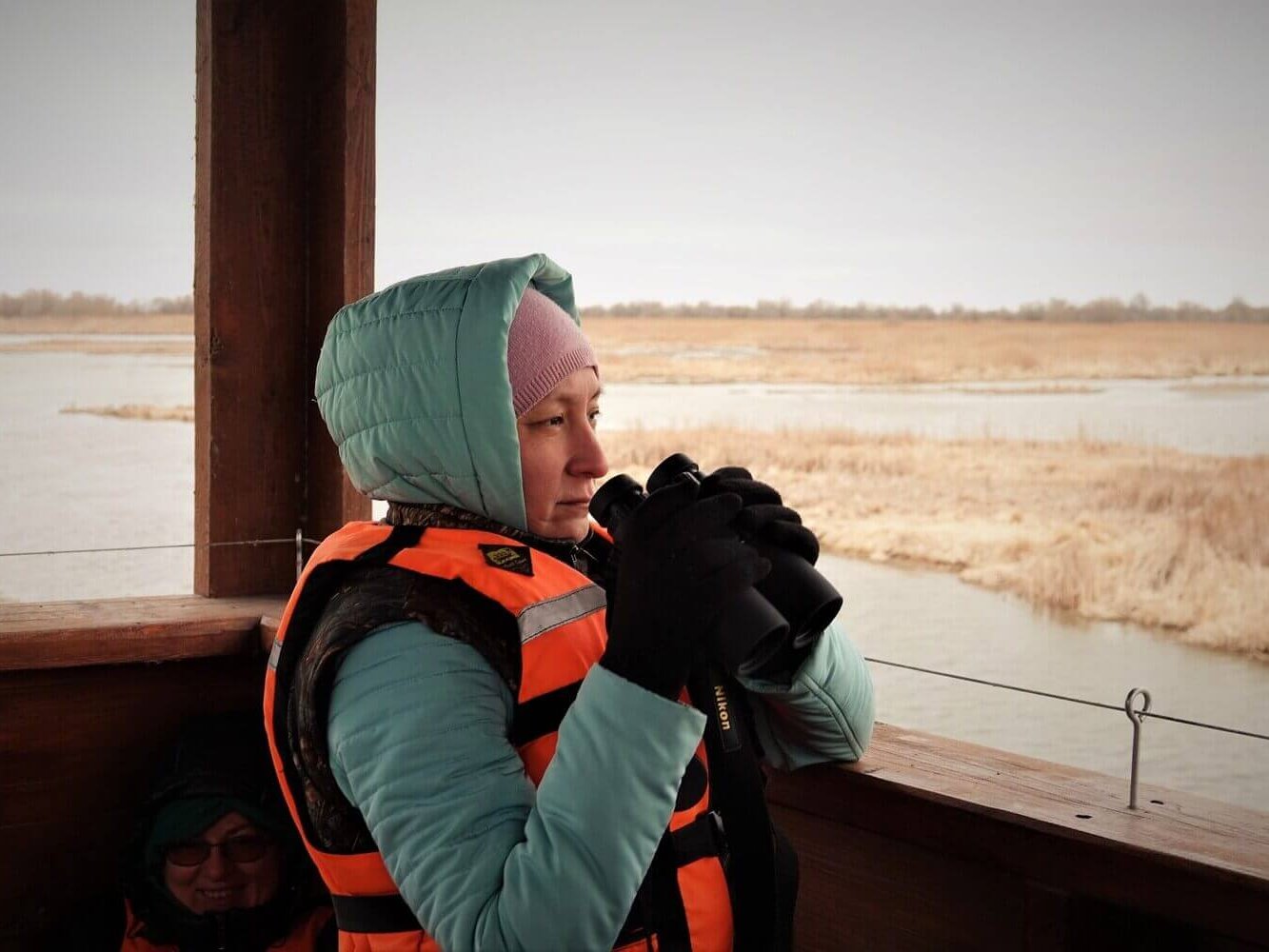 Не забывали волонтеры и про познавательную деятельность. В один из дней вместе с лаборантом-исследователем, орнитологом Владимиром Стрелковым и заместителем начальника отдела развития и познавательного туризма Мариной Вильдановой они отправились на пешую экскурсию в охранную зону заповедника, где искали различные следы млекопитающих, слушали голоса птиц и учились по ним узнавать пернатых. Настоящим событием для наших волонтёров, даже для тех, кто бывал в заповеднике раньше, стала экскурсия на лодках в авандельту, где он понаблюдали за птицами с вышки. Много интересного об ихтиофауне ребята узнали во время занятий с заместителем директора по научной работе Кириллом Литвиновым. Была организована не только лекция, но и специальное практическое занятие. Волонтёр Ирина Сабитова показала мастер-класс по оказанию первой помощи, во время творческого занятия ребята мастерили оригами, а волонтер Арина Попеску провела мастер-класс по актерскому мастерству в стиле импровизации.