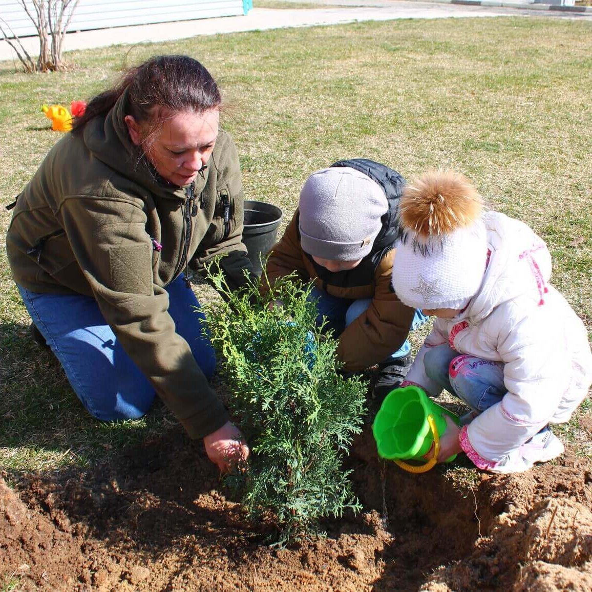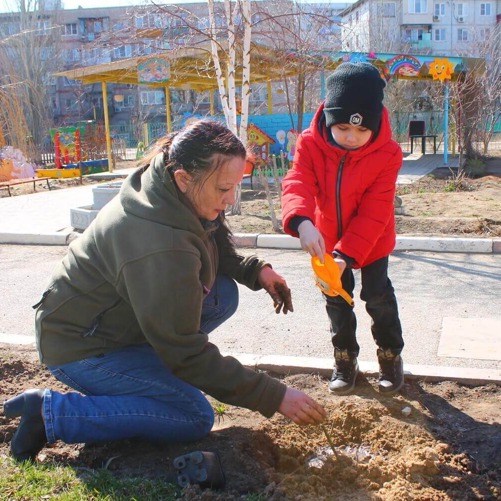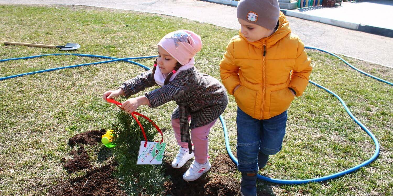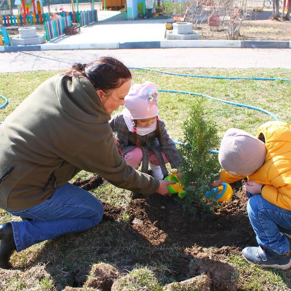 Несмотря на совсем юный возраст наши дошколята стараются во всем помогать: они не только поливают свои растения из леек и ведёрок, но и с удовольствием берутся даже за самые настоящие лопаты, так им хочется поучаствовать в процессе. За каждым саженцем закрепляется ребёнок или группа детей, которые теперь будут за ним ухаживать и вести дневник наблюдений. В дневнике они будут рассказывать о всех изменениях, что происходят с растением. Таким образом, саженцы будут расти и крепнуть вместе с детьми. Это интересный экопросветительский опыт, благодаря которому дети поймут, сколько времени и сил потребуется, чтобы вырастить большое здоровое дерево.
