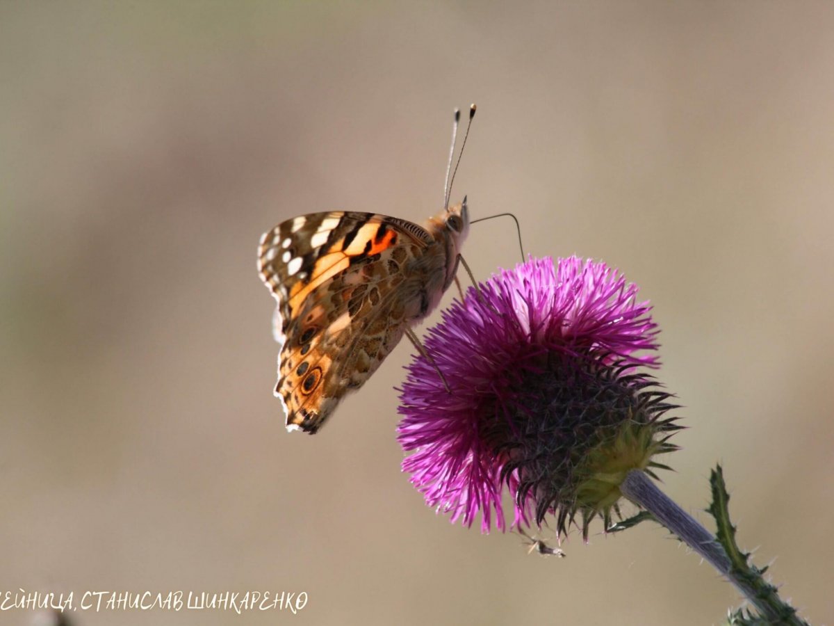 Репейница или чертополоховка – это дневная бабочка. Характерный узор этой бабочки узнает каждый астраханец – крылья кирпично-красного цвета с чёрными и белыми пятнами. Самцы и самки этой бабочки выглядят одинаково. Латинское название Vanessa cardui происходит от слова Carduus, что значит чертополох. Это одно их кормовых растений бабочки, так же её можно заметить на крапиве и бодяке. Углы верхний крыльев репейницы чёрные с белыми пятнами, по краю крыльев белая кайма, на исподе задних крыльев пять характерных сине-жёлто-чёрных глазков. Гусеница у этой бабочки окрашена тёмно-серым с жёлтым цветами. Интересно, что репейницы совершают массовые миграции. Бабочки летнего поколения зимуют в Северной Африке, где они также размножаются, это поколение весной мигрирует на север, где вновь выводится летнее поколение бабочек. В конце лета уже новое летнее поколение мигрирует обратно в Африку.