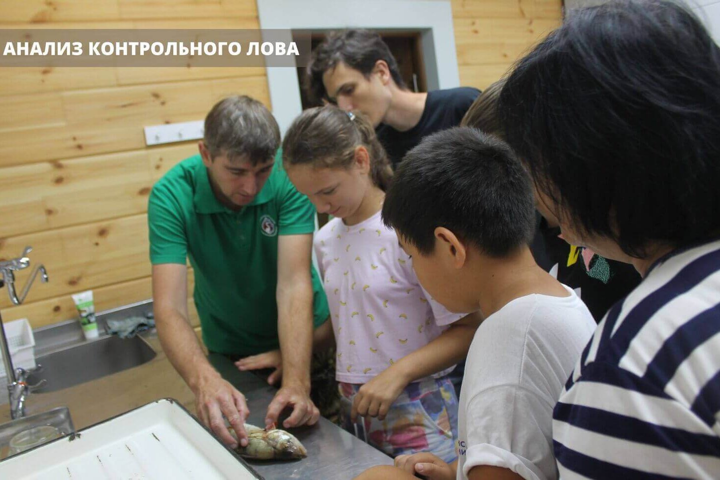 Но какая же наука привела детей в наибольший восторг? Ежегодно в рейтинге отзывов об экспедициях лидирует день ихтиологии. День рыб – стал кульминацией программы и нынешней экспедиции, ведь участники смогли поработать в настоящей научной лаборатории. Под руководством ихтиолога Кирилла Литвинова ребята провели анализ контрольного лова рыбы. Ихтиолог Степан Подоляко познакомил своих юных учеников с методикой определения видовой принадлежности молоди рыб. Совсем как настоящие исследователи группа работала с микроскопами, при этом каждый участник получил возможность определить самостоятельно вид полученного для исследования малька.