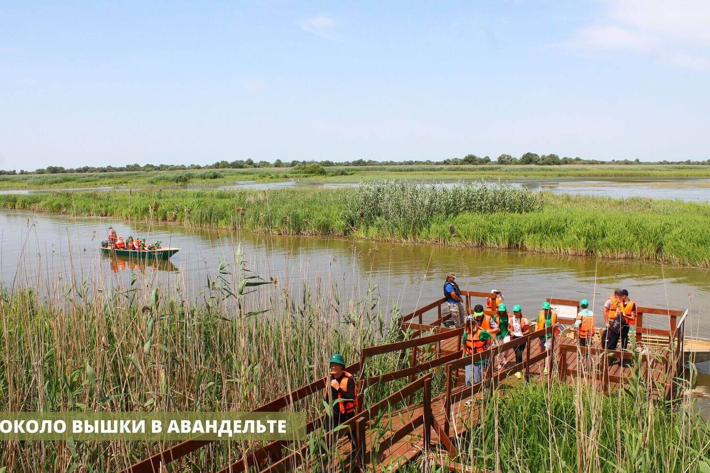 Орнитологический день подарил участникам незабываемое путешествие в самую таинственную часть заповедника – по протокам в авандельту. Там они встретили пернатых обитателей заповедника: на ветках вдоль водотоков важно сидели и внимательно обозревали окрестности орланы-белохвосты; в авандельте белоснежные лебеди-шипуны грациозно скользили по водной глади, а на полузатопленных корягах сушили свои перья, раскинув крылья, намокшие после удачной рыбалки большие бакланы. Увидеть дельту с высоты птичьего полёта ребята смогли со смотровой вышки, а опытный орнитолог Владимир Стрелков рассказал интересные факты о жизни пернатых обитателей заповедника.