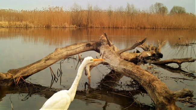 Одно поваленное дерево, а столько занимательных моментов. С виду ничем не примечательная коряга словно подиум для разных птиц. Здесь и орлан-белохвост, и малая белая цапля, и большая белая цапля, и чирки-трескунки проплывают в поисках корма. Чирки-трескунки питаются в основном водными беспозвоночными, особенно моллюсками, мелкими ракообразными, насекомыми и их личинками. Голос самца чирка-трескунка – тихий «деревянный»…