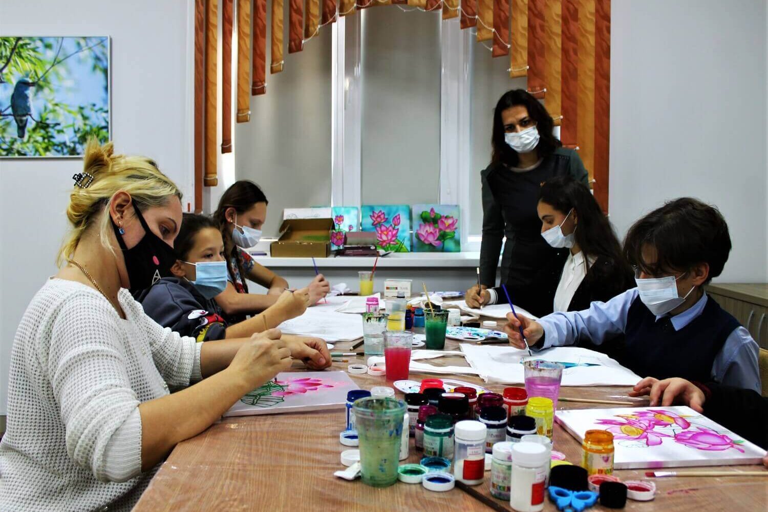 Наша «Заповедная палитра» продолжается. Сейчас школьники осваивают технику «холодный батик» и учатся рисовать акриловыми красами по ткани. Изучать различные художественные техники ребятам помогает мастер декоративно-прикладного искусства, сотрудник отдела развития и познавательного туризма Астраханского заповедника Ирина Букоткина.