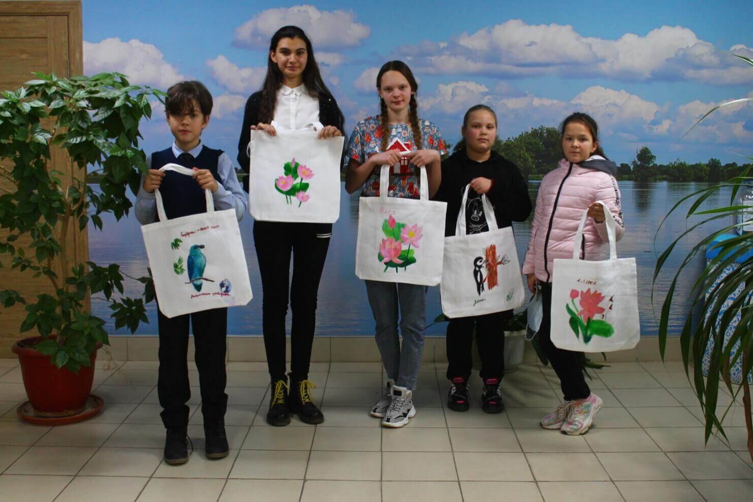 Участники кружка, которые уже закончили картины на шёлке, приступили к следующему этапу – роспись холщовых экосумок. Вдохновением послужили самые яркие заповедные птицы – зимородки, сизоворонки и золотистые щурки. Для росписи годятся только специальные акриловые краски, которые не выцветают, не трескаются и легко переживают стирку. Роспись сумки – процесс тоже кропотливый, ткань белая, нужно выверять каждое движение. Но результат стоит всех усилий – холщовая сумка с ярким рисунком, которая станет отличным аксессуаром для шоппинга.