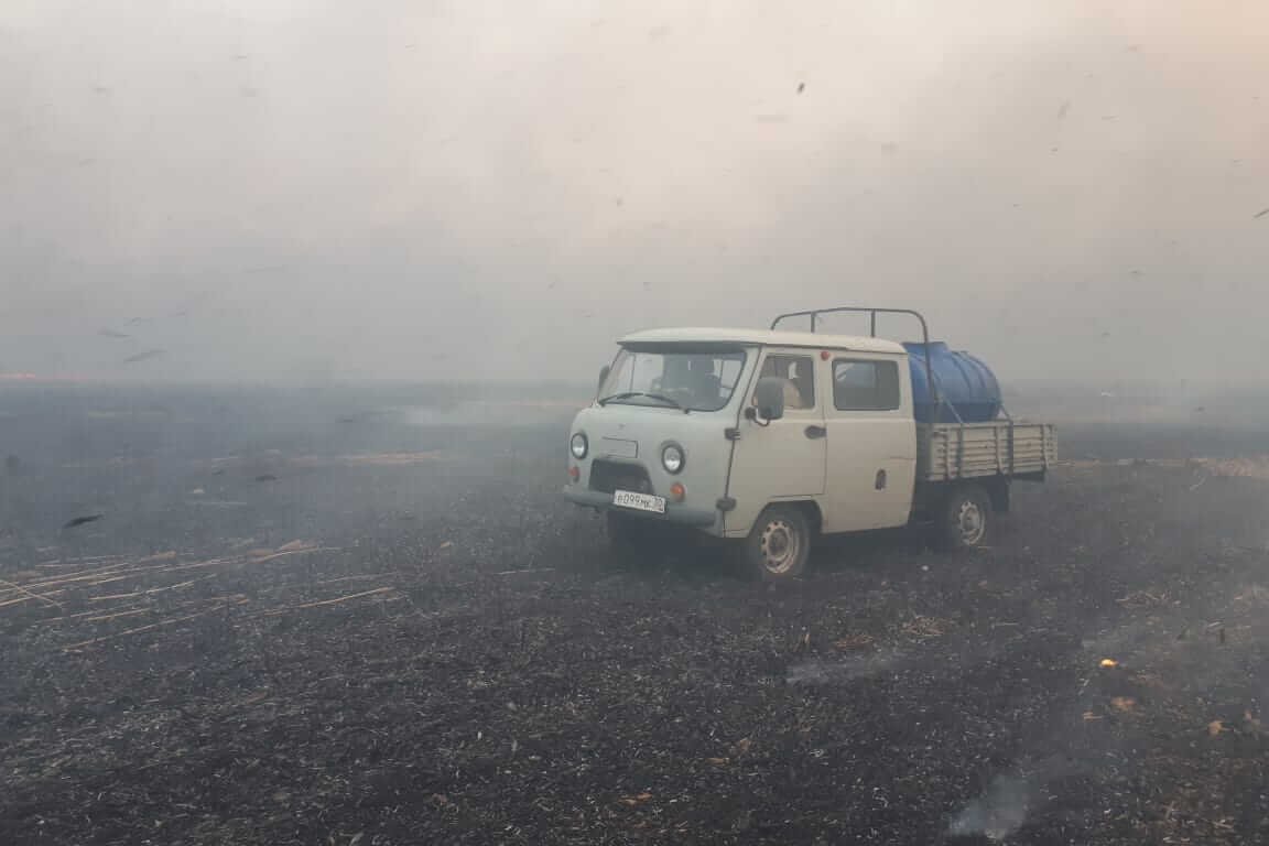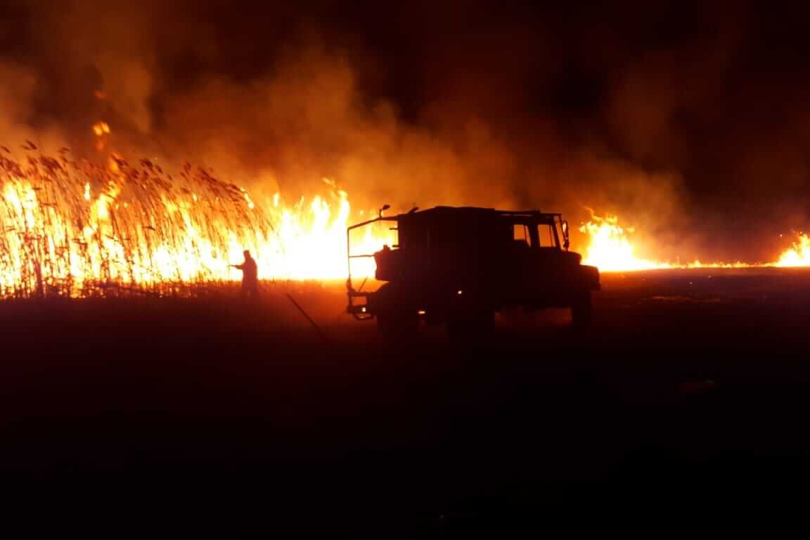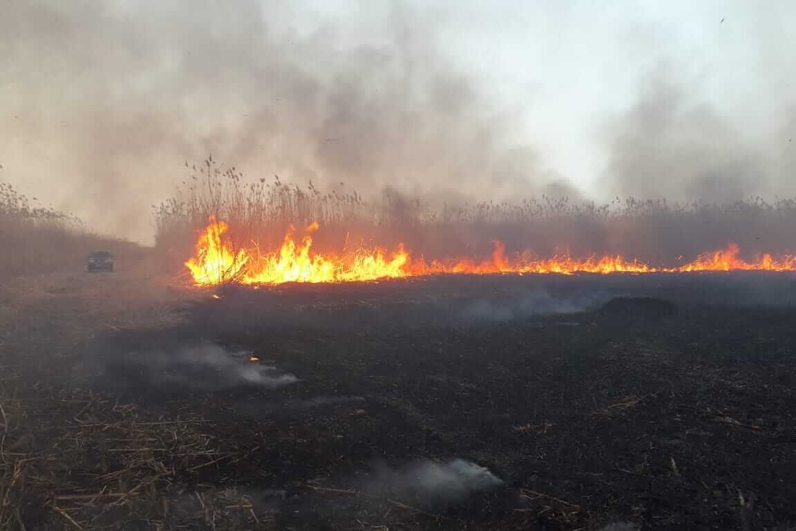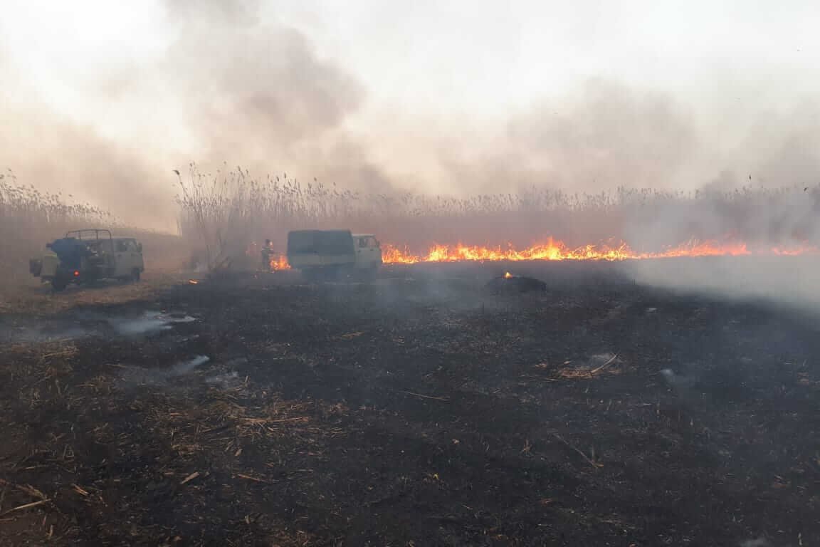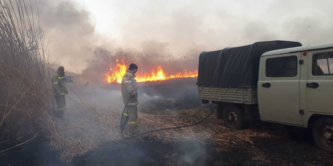 Тушить возгорание начали ещё на сопредельной территории. По границе заповедника проходит Тишковский канал шириной около 100 м, берега канала постоянно обливали с мощных мотопомп, но несмотря на это, 24 марта в 16:30 (местное время) огню удалось переброситься на территорию Трёхизбинского участка Астраханского государственного заповедника при сильном восточном ветре с порывами до 20 м/с. Территория природного пожара характеризуется густой тростниково-рогозовой растительностью. Метёлки тростника мгновенно «вспыхивают» и сильным ветром перебрасываются на большие расстояния.