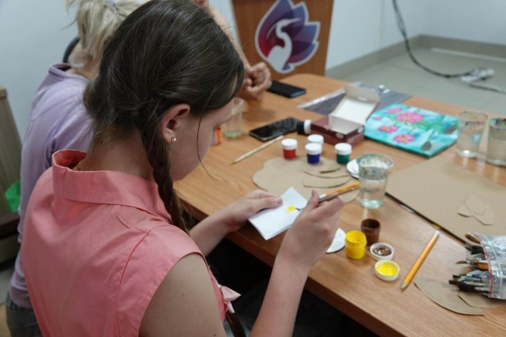 На заключительном занятии кружка участники подвели творческие итоги и вновь взяли кисти в руки. Они придумывали логотип «Заповедной палитры» и наносили его на деревянные магниты. В будущем рисунки ребят будут использованы для разработки логотипа кружка. Всем участникам вручили сертификаты об окончании кружка и сувенирную продукцию Астраханского заповедника.