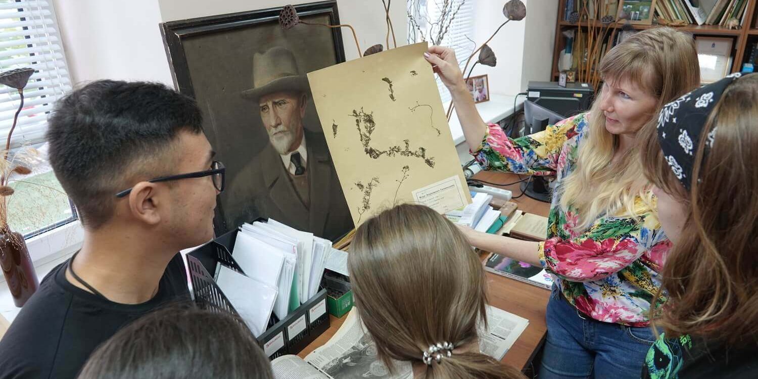 Геоботаник Наталья Литвинова показала студентам гербарный образец, которому почти сто лет. И такие гербарии пополняются постоянно и бережно хранятся сотрудниками Астраханского заповедника для будущих поколений исследователей. Также ребята смогли «пощупать» плоды лотоса – орешки. Фенолог-гидролог Юлия Благова показала студентам обширную картотеку фенологических карточек, которые собираются на протяжении 90 лет.