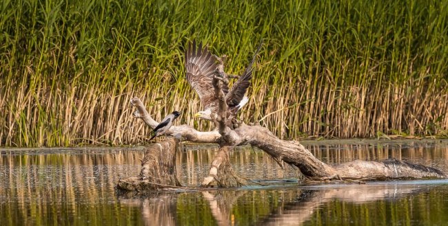 Сегодня в нашей традиционной рубрике #фотоловушкиАГЗ очень необычная зарисовка из жизни заповедных обитателей. Ворона спрятала добычу среди опавшей растительности, но, кажется, птицу не устроило место хранения – пернатая быстро откопала заветный кусочек назад. Только насладиться добычей ей всё равно не удалось – на «сцену» вышел орлан-белохвост… Видео от Евгения Полонского