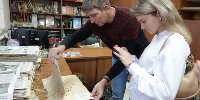 Далее началась самая любопытная часть – студенты отправились в научные лаборатории Астраханского заповедника. Первой стала лаборатория геоботаники, где хранятся образцы, которые были собраны в ещё начале прошлого века. Некоторые старые гербарии студенты даже смогли изучить вблизи.