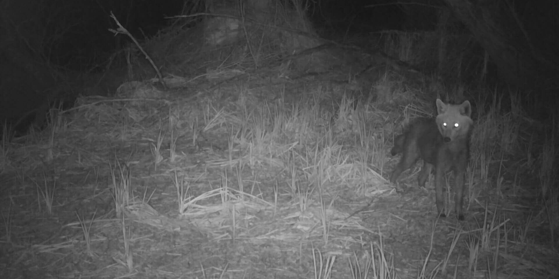Конечно, выложить ту самую фотографию лодки с фотоловушки мы не можем, но зато прикрепляем фотографию шакала, сделанную под покровом ночи тоже на фотоловушку.