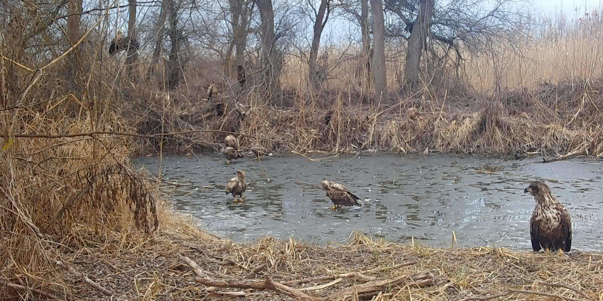 Сегодня у нас расслабляющая фотоловушка перед праздником. Будем считать в кадре орланов-белохвостов. Евгению Полонскому удалось поймать скопление гордых хищников. Да, на зимовках орланы-белохвосты собираются десятками особей. А вы сколько насчитали?