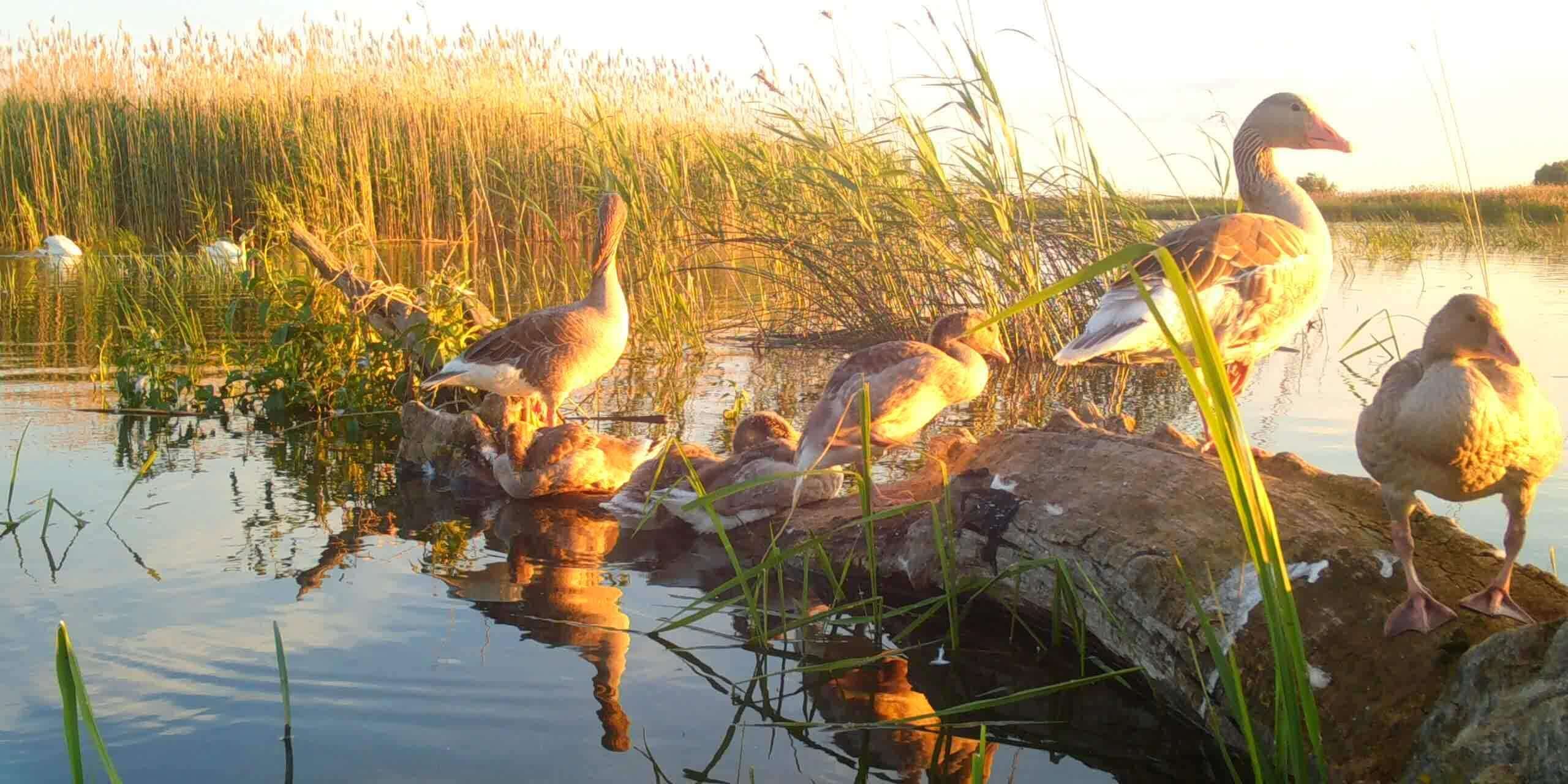 Подъем на крыло у серый гусей происходит в возрасте 2—2,5 месяцев. Интересно, что молодые птицы обычно держатся с родителями в течение всей зимы и вместе с ними возвращаются к месту рождения. После постройки гнезда родите ли изгоняют их со своего участка, и они присоеди няются к группам неполовозрелых птиц второго и третьего года жизни и начинают послебрачные ко чевки, которые заканчиваются образованием лин ных скоплений на наиболее крупных и труднодо ступных мелководных водоемах.