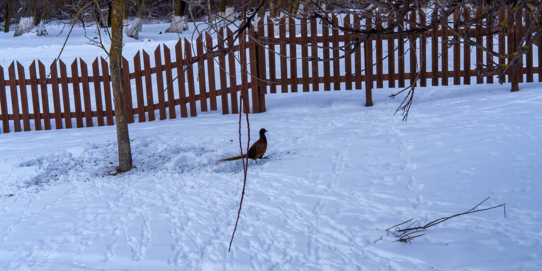 Первые фазаны потянулись к подкормочным площадкам уже через полчаса. На фотографиях можно заметить яркого самца фазана, который фотографироваться на кормушке «постеснялся», но был запечатлён неподалёку.